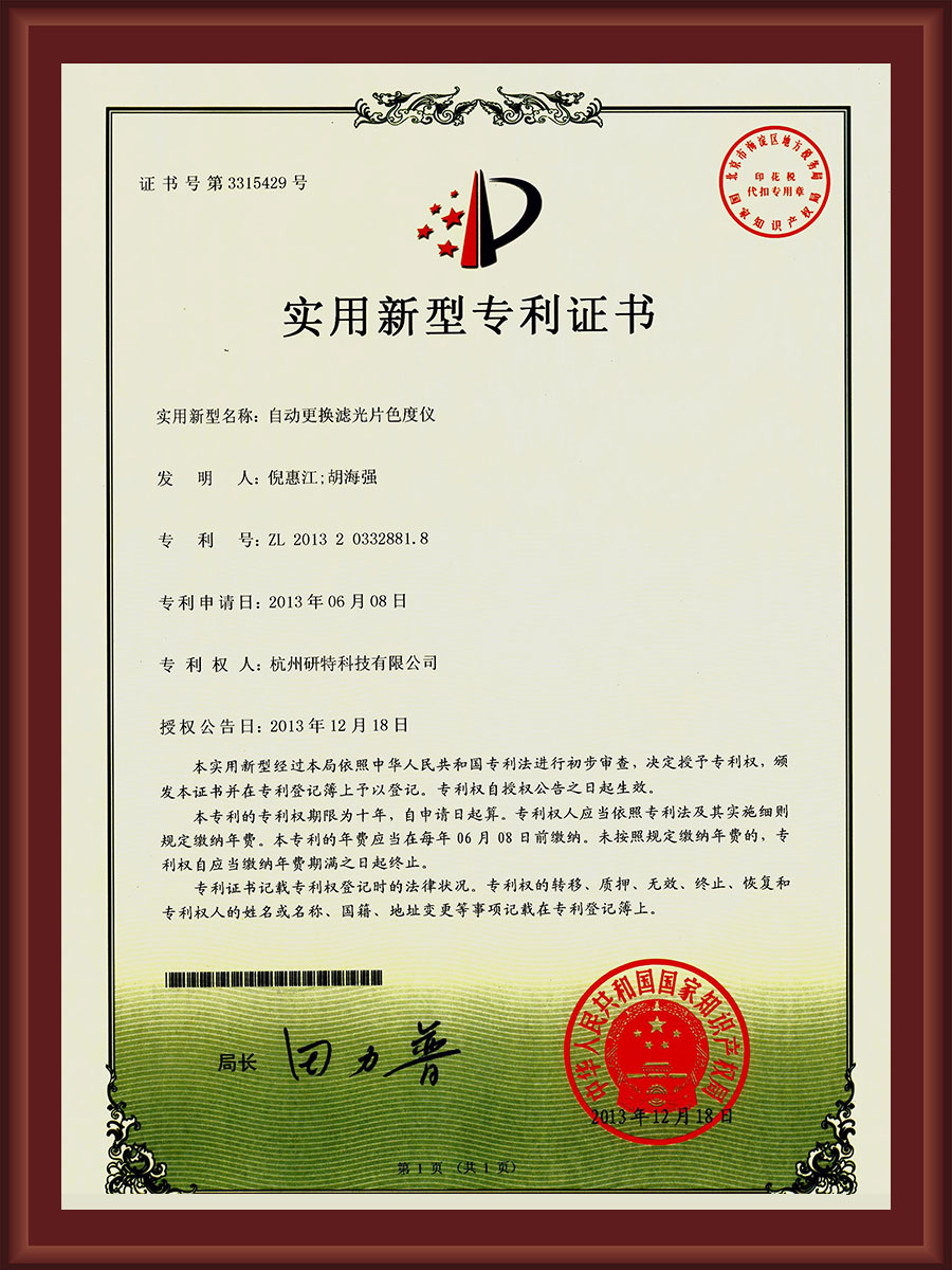 一家隸屬于中國(guó)浙江杭州余杭區(qū)國(guó)家高新技術(shù)企業(yè), 主要從事包裝、造紙、印刷、紡織、卷煙、醫(yī)輔、化工等行業(yè)各類(lèi)實(shí)驗(yàn)智能檢測(cè)分析及自動(dòng)化控制設(shè)備的研發(fā)、生產(chǎn)、銷(xiāo)售及服務(wù),尤其在光學(xué)分光測(cè)色領(lǐng)域具有世界先進(jìn)技術(shù)水平,公司擁有40多項(xiàng)發(fā)明專(zhuān)利、實(shí)用新型專(zhuān)利及計(jì)算機(jī)軟件著作權(quán)專(zhuān)利,公司組織和參與部分行業(yè)標(biāo)準(zhǔn)的制定,具有計(jì)量器具制造型式批準(zhǔn)證書(shū),按ISO9001國(guó)際質(zhì)量管理體系運(yùn)營(yíng),是一家國(guó)內(nèi)外優(yōu)秀、具有強(qiáng)烈開(kāi)拓創(chuàng)新意識(shí)的專(zhuān)業(yè)實(shí)驗(yàn)分析檢測(cè)儀器儀表制造商。